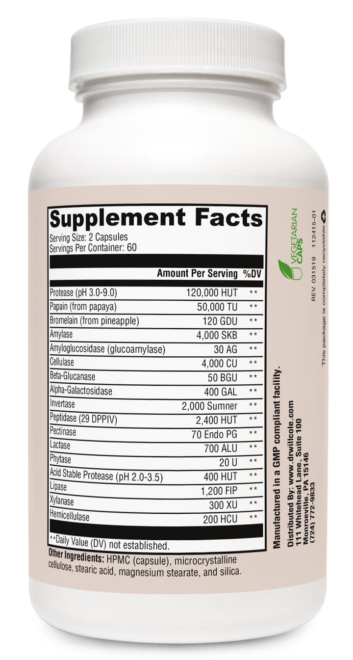 The Enzymes® is a cost-effective, non-prescription, broad-spectrum, digestive enzyme formula suitable for vegans and designed to support the digestion of fat, protein, carbohydrate, fiber, and lactose. This comprehensive formula contains lipase, proteases, alpha-galactosidase, hemicellulase, papain, lactase, and other key digestive enzymes. The Enzymes work in a wide pH range—unlike porcine pancreatin, which works in a narrow pH range.*
